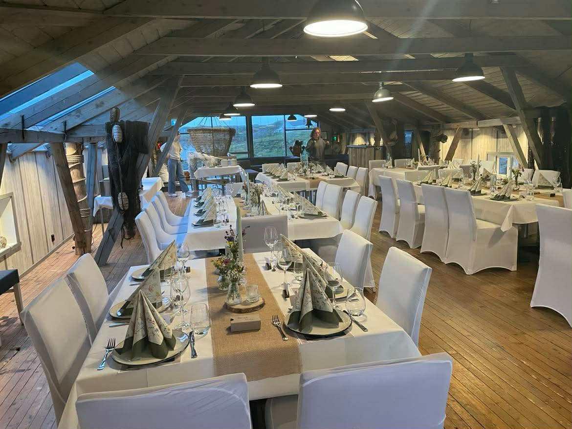 Lokalet ligger ytterst på Hellesøy, omgitt av vakker kystnatur – en uforglemmelig ramme for ditt arrangement.